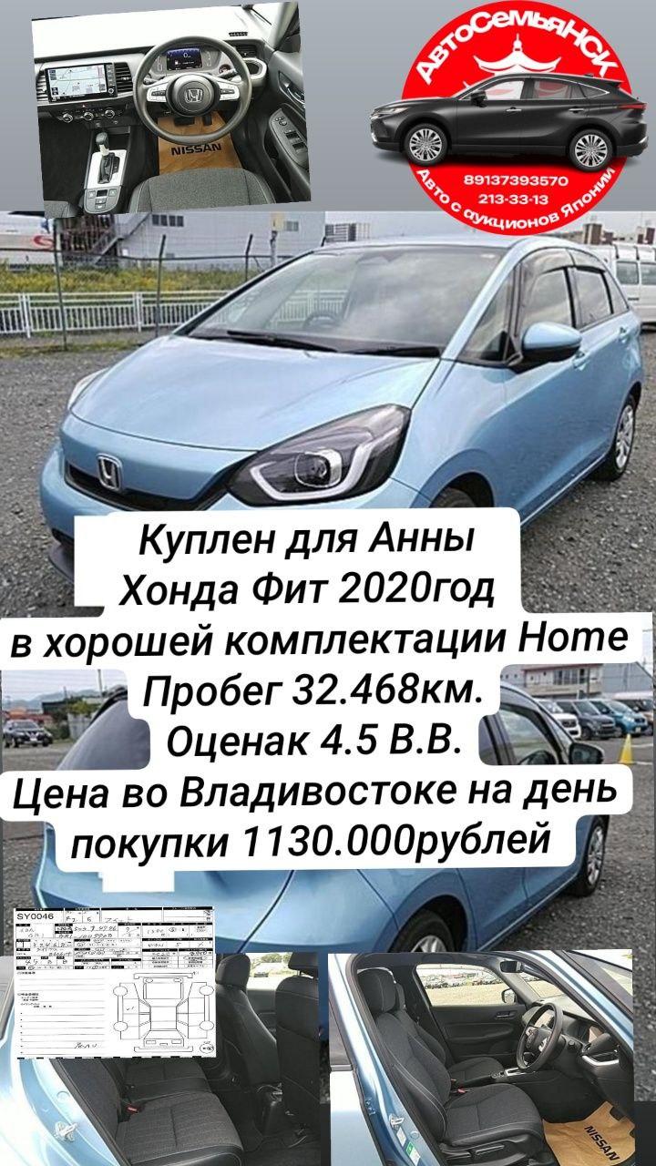 Стоимость Хонда Фит 2020 во Владивостоке на день покупки 1130.000рублей